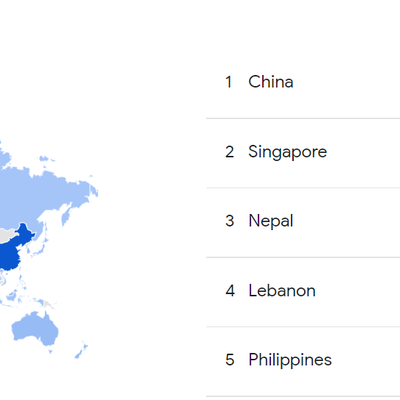 通过 Google Trends 可以看一些热门主题在不同地区的热度,即用户搜索的关键字中,有多少强度是和这些主题有关。