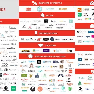 附图是 IAB 评选的 Top 250 D2C 品牌;其研究发现有 78 家采用了 “订阅服务 Subscription Model” 的商业模式。