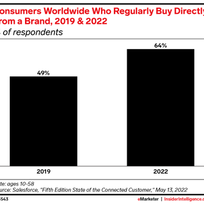 Salesforce 的调研显示,2019 年调研对象中只有 49% 的人通过网站购买过 D2C 品牌,到 2022 年这一比例提升到 64%。