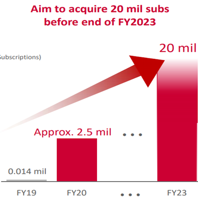 根据 NTT DoCoMo 公布的预期,希望在 2023 财年能够发展 2000 万 5G 用户(当前 DoCoMo 移动用户约 七千多万)。
