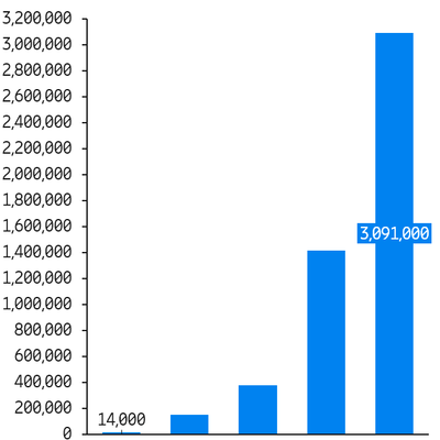 截止到 2021年3月底,NTT DoCoMo 的 5G 用户比上季度翻了一番,到了 309 万,占其 8,263 万总用户技术的 3.74%。