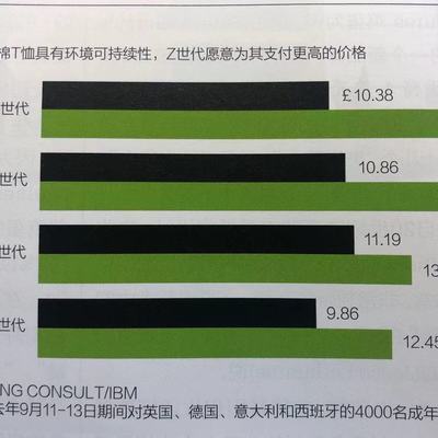 调研表明,Z 世代为一件环保T恤支付溢价的意愿最强。