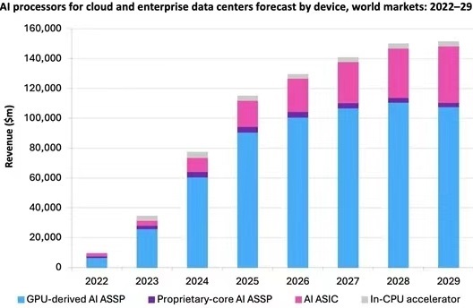 预计到 2029 年市场规模可达 1,510 亿美元,除了 GPU 外,AI ASIC 也会有很大空间。
