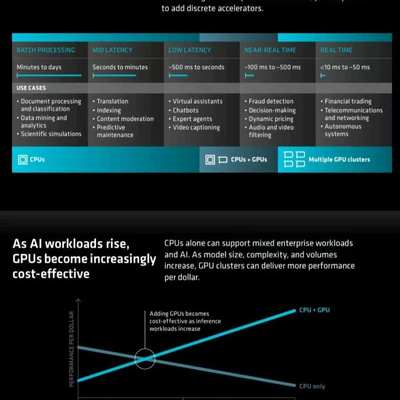 围绕 CPU 和 GPU 的目标任务差别,有研究认为,有非常多的 AI 计算需求,并不需要 “实时性”。从后台批处理(Batch Processing)、中度延迟(Mid Latency)、低延迟(Low Latency)接近实时(Near Real time)、实时(Real time),计算任务可以分为很多种。
