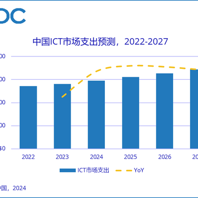 2023 年中国企业对 ICT 的支出规模达到了 2,433 亿美元,同比增长了 6.5%。