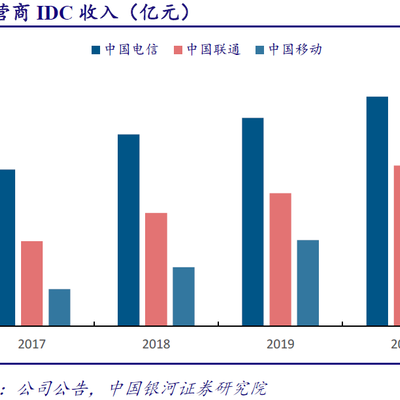 其中,中国电信 IDC 业务体量较大,中国移动IDC 业务收入增长较快,IDC 业务收入增速为54%。