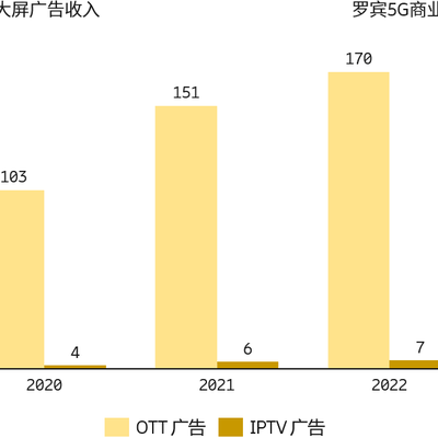 根据勾正数据的估算,中国 OTT 电视的广告收入在 150~170 亿体量左右,而三大运营商主导的 IPTV 虽然有 3-4 亿的用户,广告收入却处于很低的数量级(不到 10 亿元)。