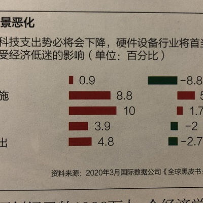 来自 IDC 的研究,其全球科技支出增速百分比(调整前 vs . 调整后)。