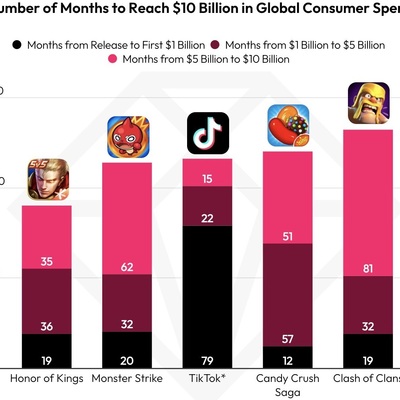 data.ai 数据监测显示,消费者在 Tiktok 的 支出累积超过 100 亿美元,这是首个非游戏应用大达到的成绩。之前突破 100 亿支出的都是游戏类应用。