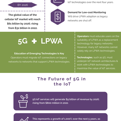 2022 年全球蜂窝网络 IoT 市场空间为 310 亿美元,预计到 2026 年这一数字会翻一倍,接近 610 亿美元。