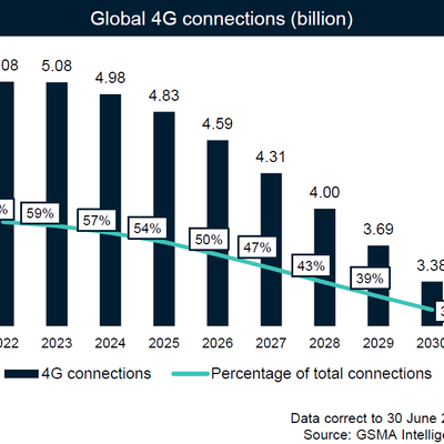 随着 5G 的规模上量,GSMA 预计 2023 年将是 4G 连接数最高的一年(50.8 亿户),然后就开始进行下行通道。
