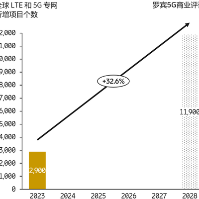 Berg Insight 认为到 2028 年LTE 和 5G 专网的项目个数会提升到 11,900 个,未来几年的 CAGR 为 33%。其中会有相当数量的的 LTE 专网会升级到 5G 专网。