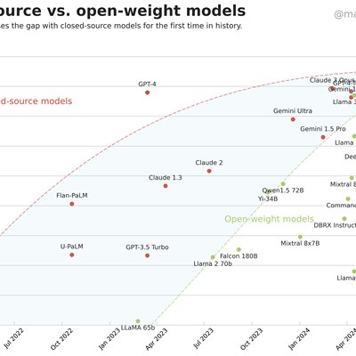 Maxime Labonne 针对主流大模型的 MMLU 测试结果显示,以 Meta Llama 为代表的开源大模型正在缩小与闭环大模型的差距。