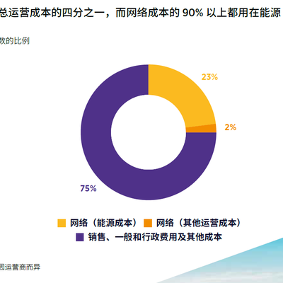 根据 GSMA 的研究,一般而言网络运营成本占总运营成本的四分之一。而网络运营成本中,90% 以上都用在了能源消耗上。