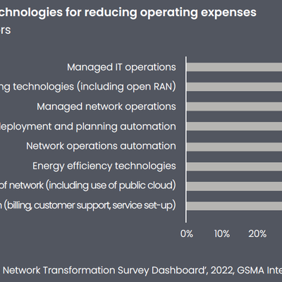根据 GSMA 的调研,反馈热度最高的 Top 3 手段分别是:(1) 计费、客户支持,客户自安装等业务自动化;(2) 云化与 IT 转型;(3) 能效改良技术。