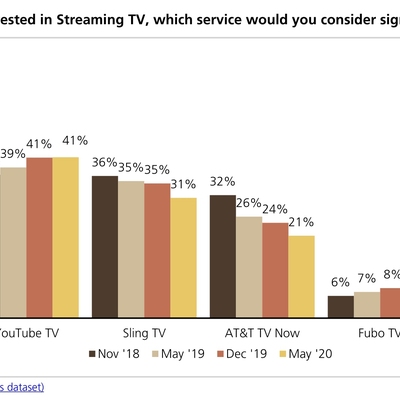 目前北美市场比较火热的 OTT TV / Streaming TV 则是指通过在线流媒体方式观看传统付费电视的节目。通常内容频道上会相对轻量级,也给了观众更多选择机会。