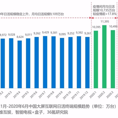 日活终端角度,2019年月均日活规模 9,109 万台,疫情期间最高冲到 1.1 亿台(2020年2月)。
