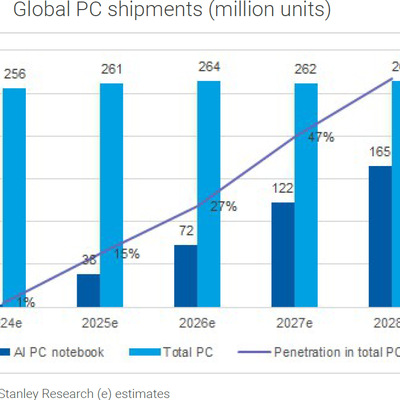 Morgan Stanley 预计到 2025 ~ 2028 年全球 PC 出货量保持在 2.6 亿部左右。
