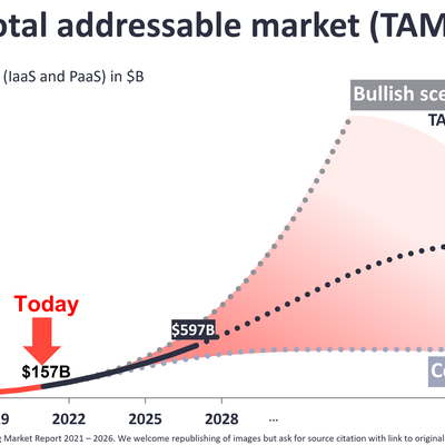公有云高速增长已经有一段时间了,IoT Analytics 估算 2021 年全球公有云(IaaS + PaaS)市场空间为 1570 亿美元。