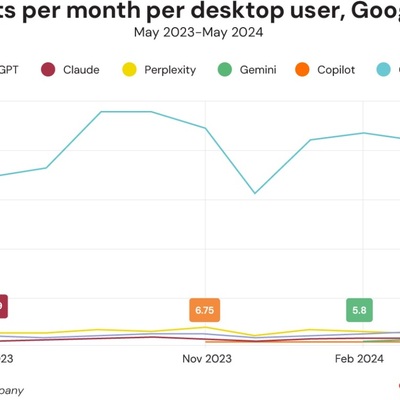 从这个角度看,生成式 AI 对 Google 的用户分流影响还很小。