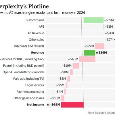 The Information 披露了 AI 搜索引擎服务商 Perplexity 的财务数字,作为初创公司目前还处于大幅亏损状态。