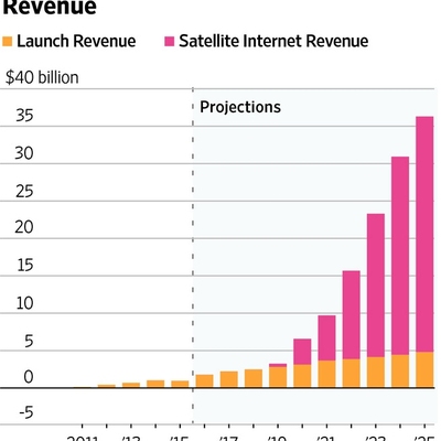 围绕 SpaceX 的财务数字外界知之甚少,附图来自 WSJ 2016 年的预测。