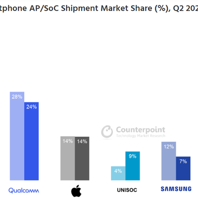 根据 Counterpoint 的数据监测,2021Q2 全球智能手机 SoC 出货量同比增加 31%。从数字看华为海思下滑明显,联发科获得了最大增长幅度。