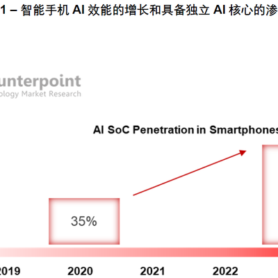 根据 Counterpoint 咨询公司的研究,2020 年 35% 的智能手机拥有独立 AI SoC,预计整个数字会提升到 75% @ 2023 年。