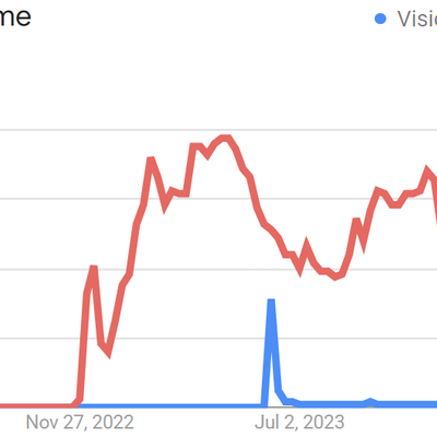 而 Apple 被寄以厚望的 Vision Pro 一共两拨影响力高点,分别是产品发布会和产品上市。但下图也展示了明显的后继乏力。