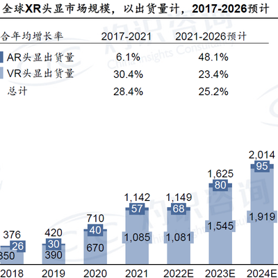 其中,纯 AR 的设备占比很低,大约占 XR 市场的 2%(7.8 万部)