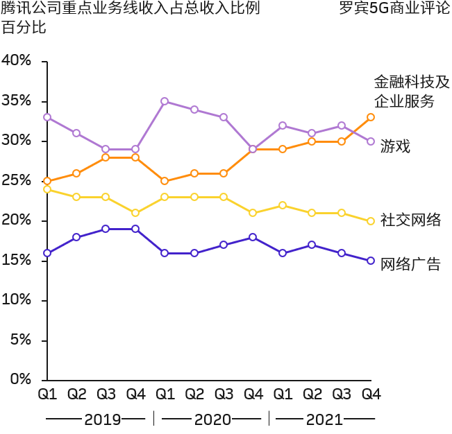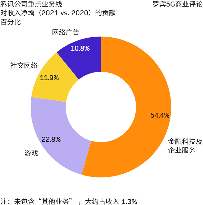 (1) 2B 类业务(金融科技及企业服务,主要是腾讯云)一路攀升,在2021Q4 首次超过游戏业务,成为腾讯第一大收入板块;