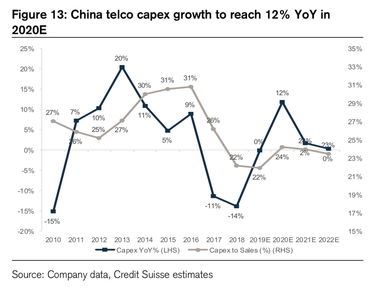 2020 年的 5G 投资为高点,350 亿美金左右。预计未来每年会保持在 300 亿美金上下。