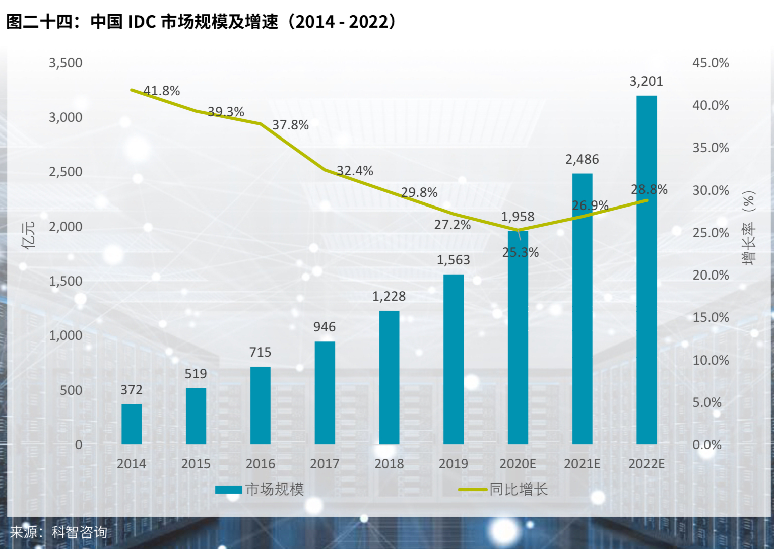 预计到 2022 年,中国数据中心业务规模将达到 3,200 亿元。