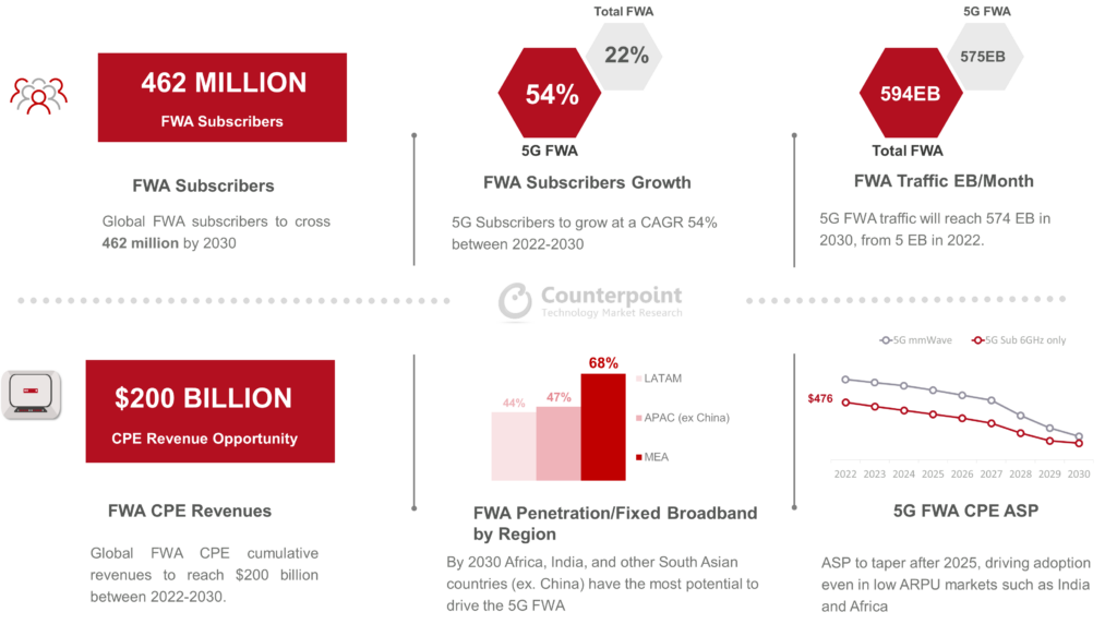 Counterpoint 估算全球 FWA 的接入终端设备 CPE 2022-2030 年是一个累计 2000 亿美元的大生意。