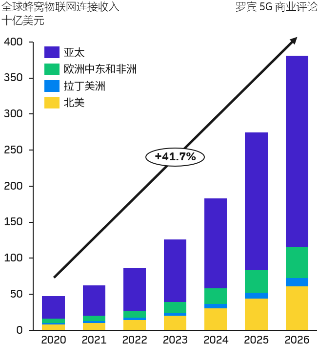 Frost & Sullivan 咨询公司的一份研究认为,全球蜂窝物联网的连接收入在 2026 年可达到 3,809 亿美元,这个数字对比 2020 年是一个巨大的提升。