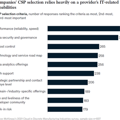 Mckinsey 对离散制造行业客户的调研,哪些因素是其选择公有云服务商时的前三个倾向要素。