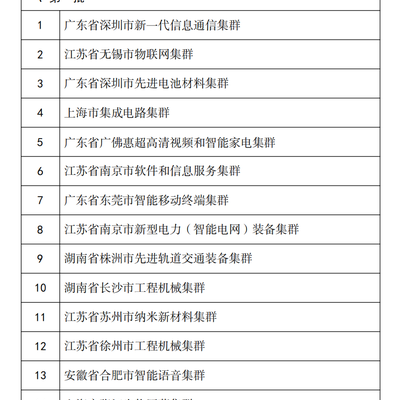 2022 年 11 月底,工业和信息化部总结交流先进制造业集群发展专项行动实施三年来的工作经验,并公布了 45 个国家先进制造业集群名单。