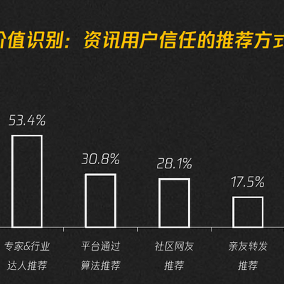 来自企鹅智库的调研,有着明确身份标识的 “媒体主编” 和 “专家&行业达人”,他们所推荐的内容,信任度已经高于算法。