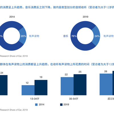 以美国市场为例,音乐 vs. 有声读物,后者的比例在持续增加。所有年龄段都在增加,中国估计也是类似情况。