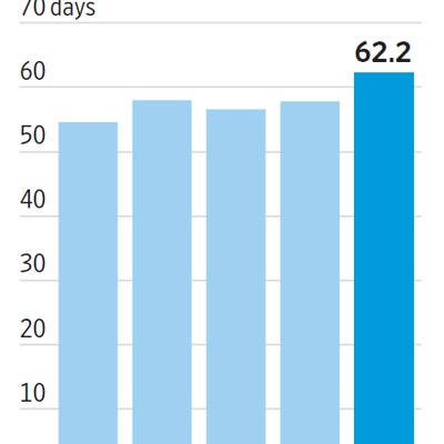 根据 WSJ 的报道,美国大公司给供应商的平均付款周期,从去年的55天提升到当前的58天。