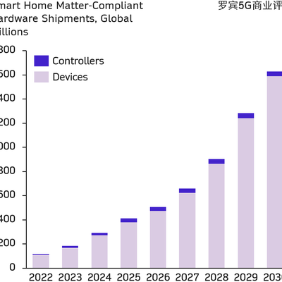 附件图表是 ABI Research 的预测,全球支持 Matter 协议的智能家居的终端设备和控制器的数量。预计支持 Matter 协议的智能家居出货量在 2025 年可达四亿部。